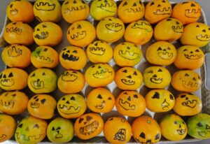 みかんの顔は、年長さんが描いてくれました。いろいろな表情がありおもしろいですね。