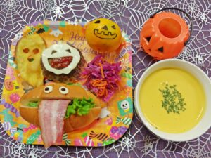 今日はお誕生会でハロウィンランチをいただきました。