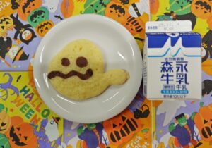 おやつは、牛乳・おばけのホットケーキ でした。