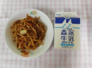 おやつは、牛乳・焼きそば でした。