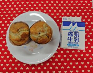 おやつは、牛乳・ブルーベリーマフィン でした。